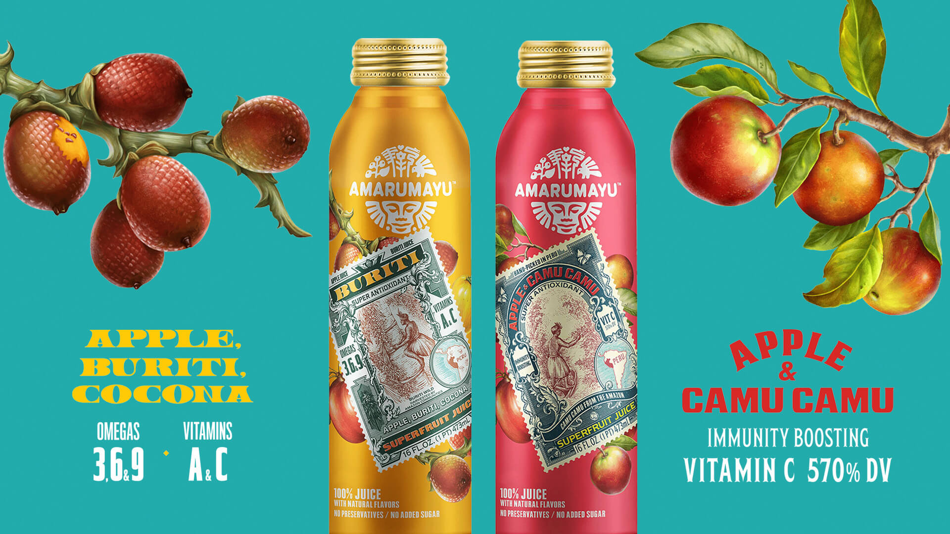 The new line of immunity-boosting Superfruit Juices is mindfully created to mitigate climate change and prevent the deforestation of the Amazon. As such, AMARUMAYU uses a regenerative approach and only uses fruit from trees that have not been cut down in order to support and preserve the natural ecosystems.”